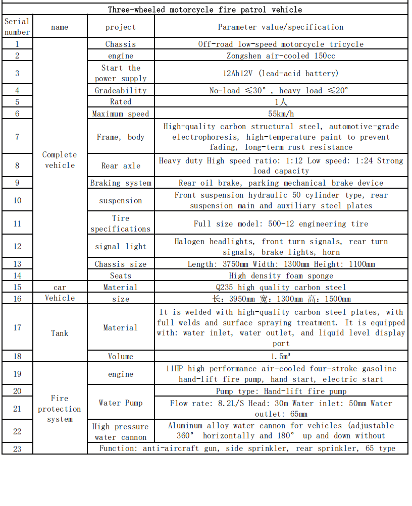 Landa-bide baxuak eta suzko geltokietatik distantzia luzea ikusita, hiru gurpileko su motozikletak udalerriko suhiltzaile profesionalen ekipamendu nagusi gisa erabil daitezke. Bi gurpileko ibilgailuek baino hornidura gehiago eraman ditzakete eta lau gurpileko suhileko kamioiek baino errepide baldintza konplexuetara egokitzen dira, "gertuko polizien bidalketa eta azkura botatzea".