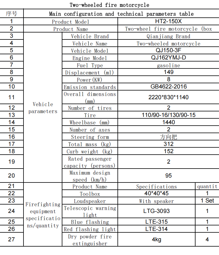 Ibilgailu osoak erabilitako xasiak egonkortasuna eta karga-errendimendua hobetu ditu. Presio handiko ur fina spray sursatzeko gailua eta eskuzko motorizatutako su pump sua itzaltzeko gailua da.